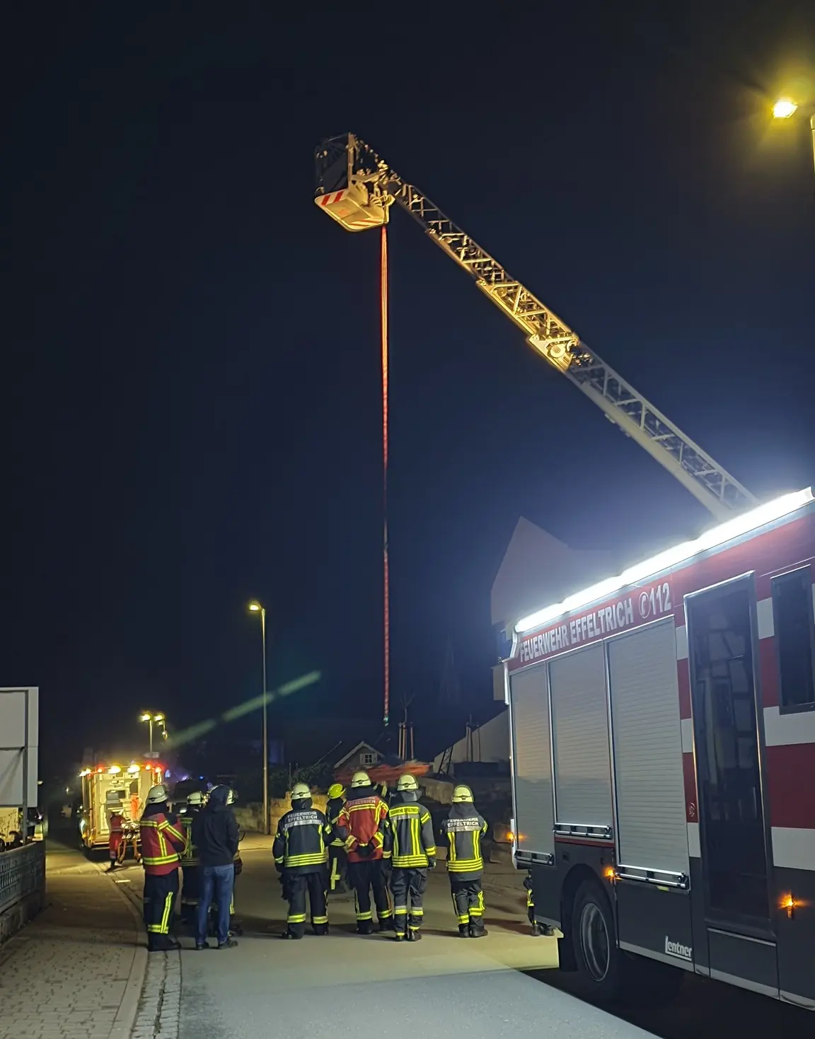 Die Kameraden der Feuerwehr Baiersdorf verbrachten die Patientin mit der Drehleiter auf Straßenniveau und übergaben sie dem Rettungsdienst.