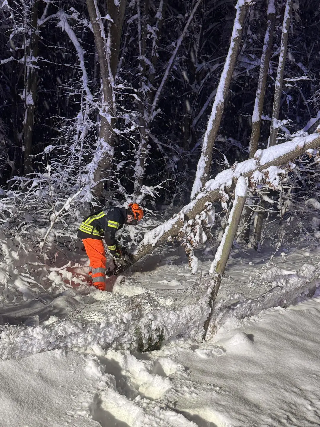 Im Verlauf des Montags wurden im ganzen Landkreis die Feuerwehren aktiv und Straßen durch Waldgebiete wurden gesperrt. Auch die Feuerwehr Effeltrich wurde zu 4 Einsätzen wegen Schneebruchs gerufen, die unter sehr winterlichen Bedingungen abgearbeitet werden mussten.